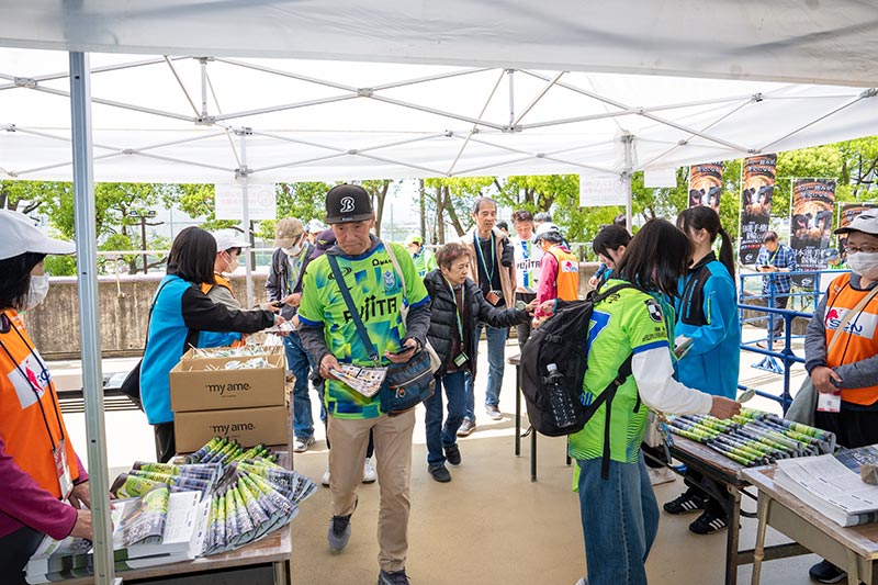 また、「車番を狙え!ジャンボ輪投げ」も大人気となり、5月1日から開催される第80回日本選手権競輪のPR告知とともに、多くのサポーターの皆さまで賑わいました。