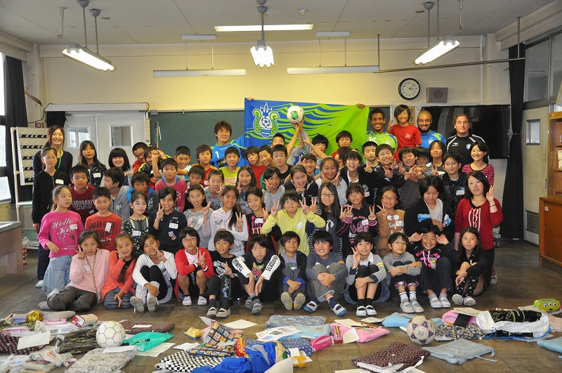 ブラジル人選手二人は日本の小学校に行くのも初めて。(「日本の小学校、すごく大きい!」とビックリしていました)
