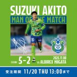 【受注販売開始】11月8日(土)新潟戦 鈴木章斗選手「MAN OF THE MATCHグッズ」