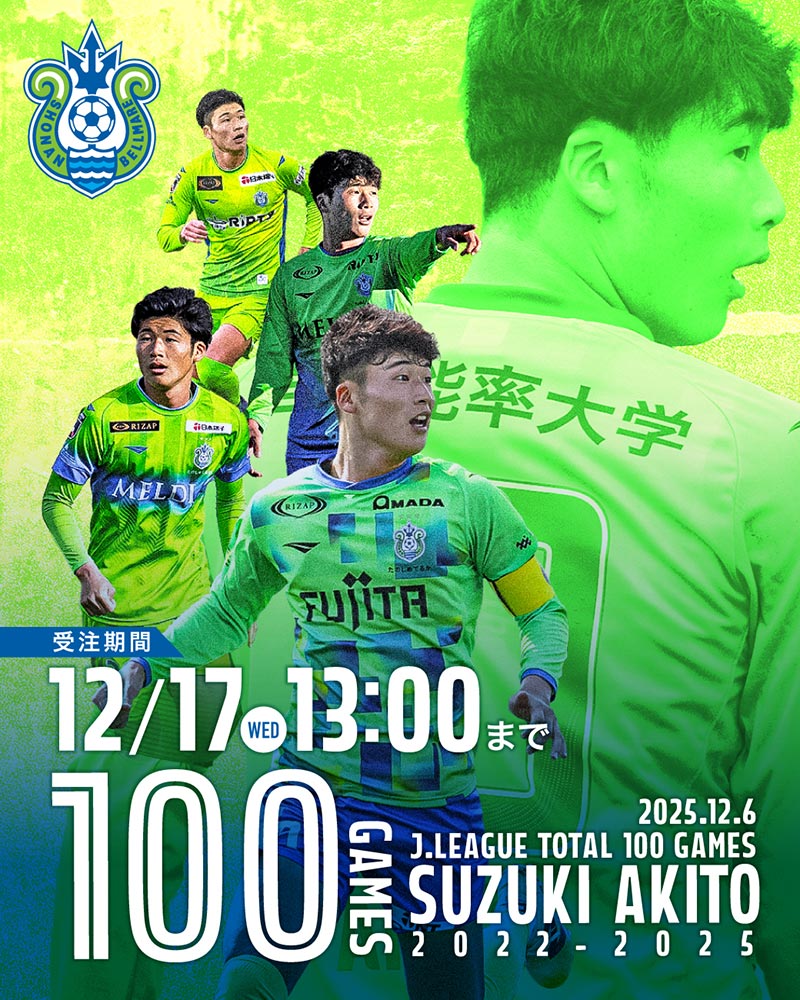 12月10日(水)18:00 鈴木章斗選手「Jリーグ通算100試合出場記念グッズ」受注販売のお知らせ