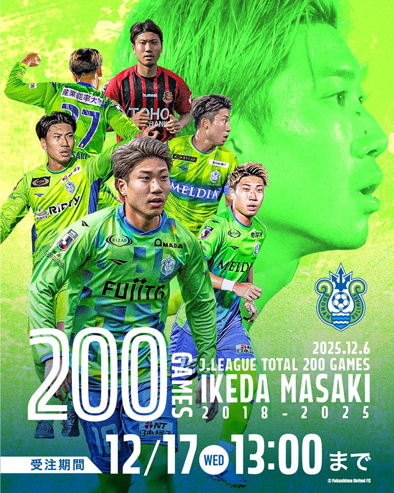 12月10日(水)18:00 池田昌生選手「Jリーグ通算200試合出場記念グッズ」受注販売のお知らせ
