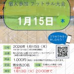 【参加者募集】1月15日(木)30歳以上対象「個人参加フットサル大会」@ひらつかサン・ライフアリーナ