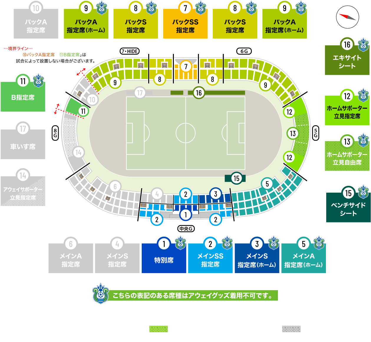※アウェイサポーター指定席、アウェイサポーター立見指定席、車いす席は先行購入対象外です。