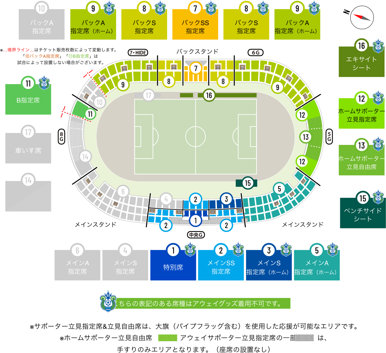 ※アウェイサポーター指定席、アウェイサポーター立見指定席、車いす席は先行購入対象外となります。