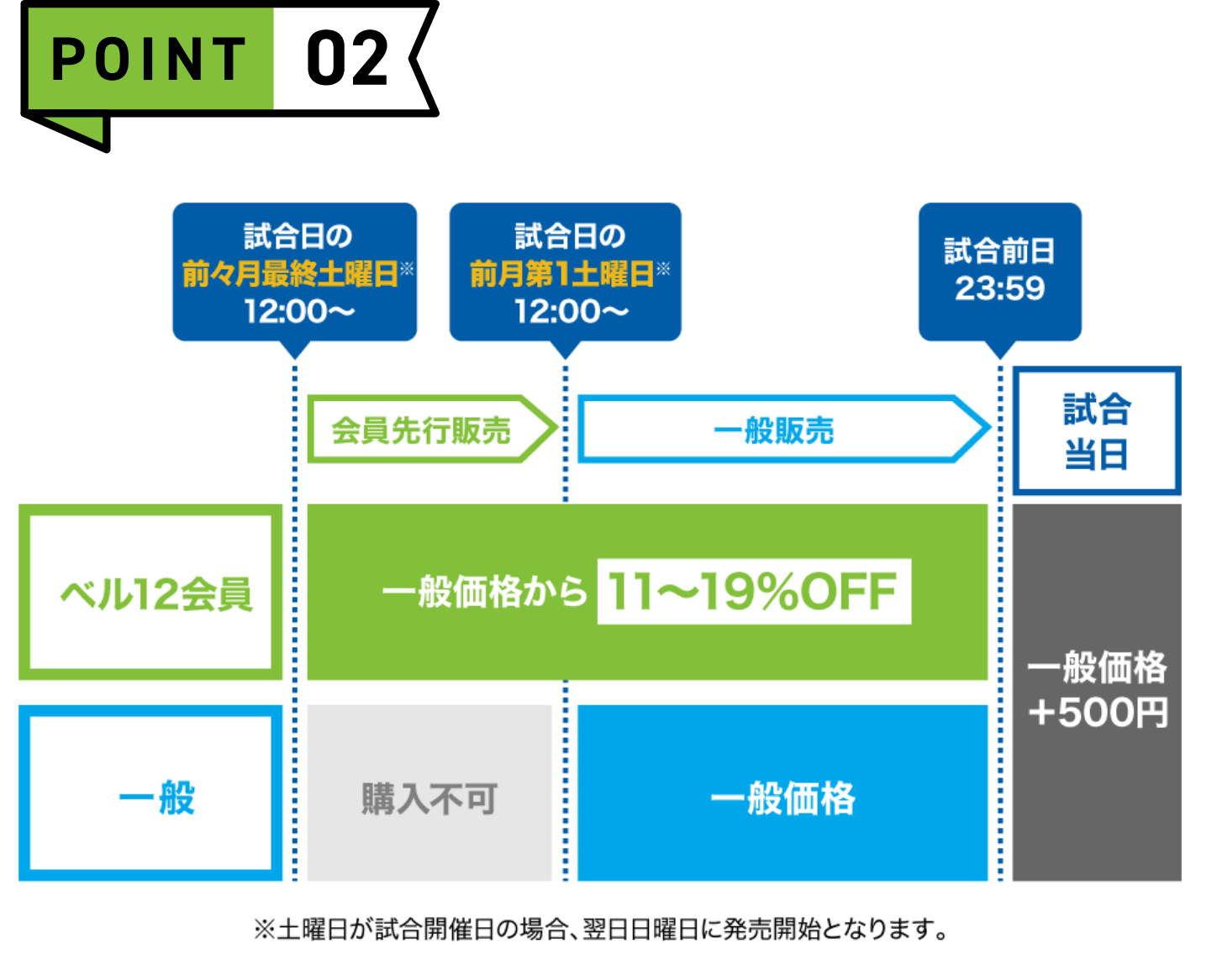 ホームゲームのチケットを、一般販売よりも前にご購入いただけます。通路側やセンターライン寄りなどの良席を確保しやすくなります!