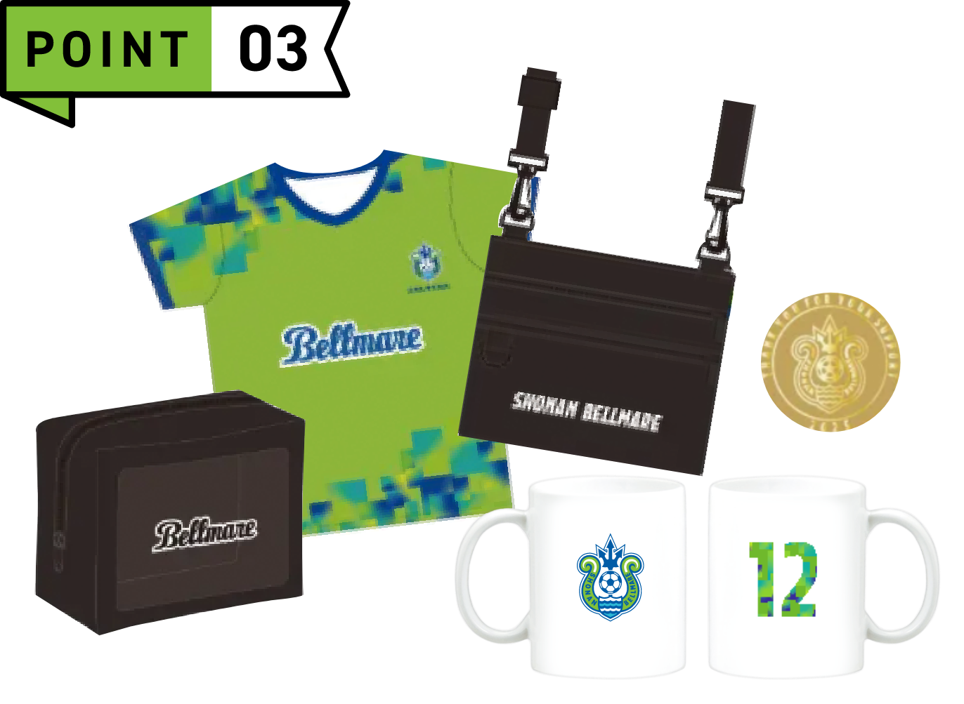 シーズンの来場回数ごとに、ベル12会員しか手に入らないベルマーレグッズがもらえます!