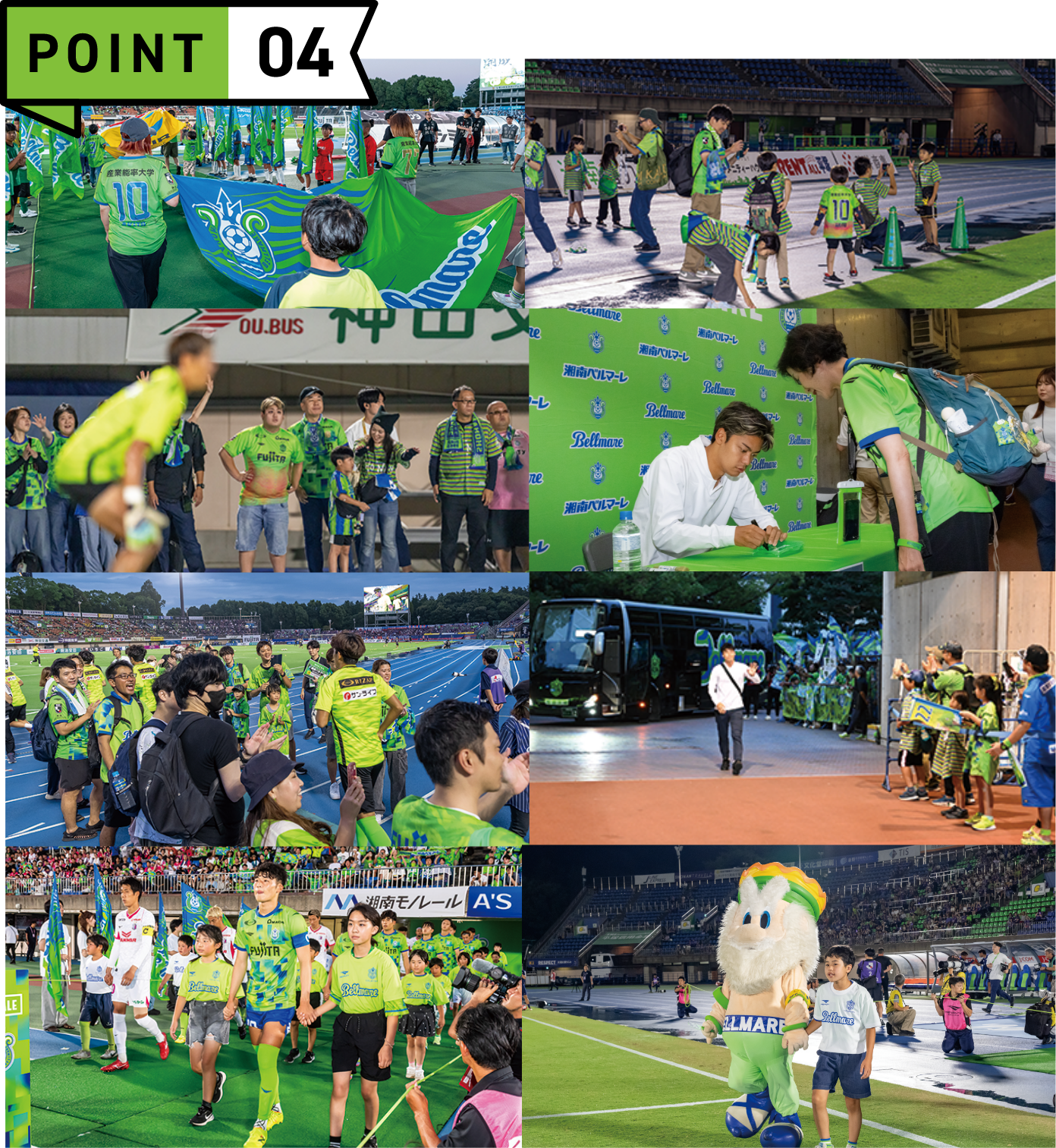 選手サイン会/選手バスお出迎え/W-UP花道/W-UP見学/フェアプレー・クラブフラッグ旗手/試合後ピッチ写真撮影/エスコートキッズ(小学生限定)/レフェリーエスコート(小学生限定)/マスコットキッズ(小学生限定)