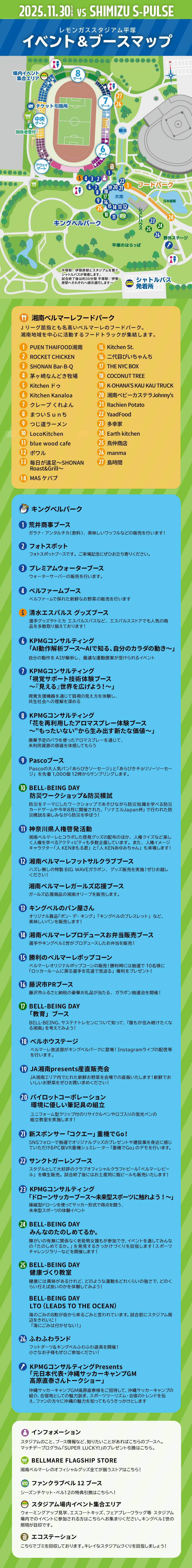 ベルマーレフードパークは湘南地域の店舗を集めた、湘南ベルマーレのホームゲーム全試合で開催されるスタジアムグルメイベント。