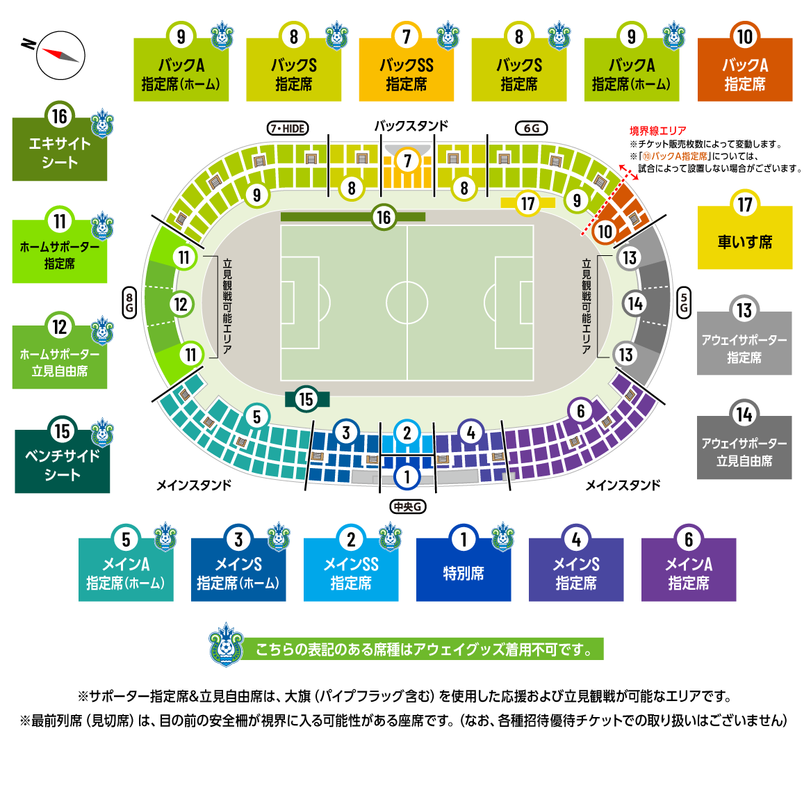 また、バックA指定席(ホーム)とバックA指定席の境界線は、チケット販売枚数によって変動いたします。