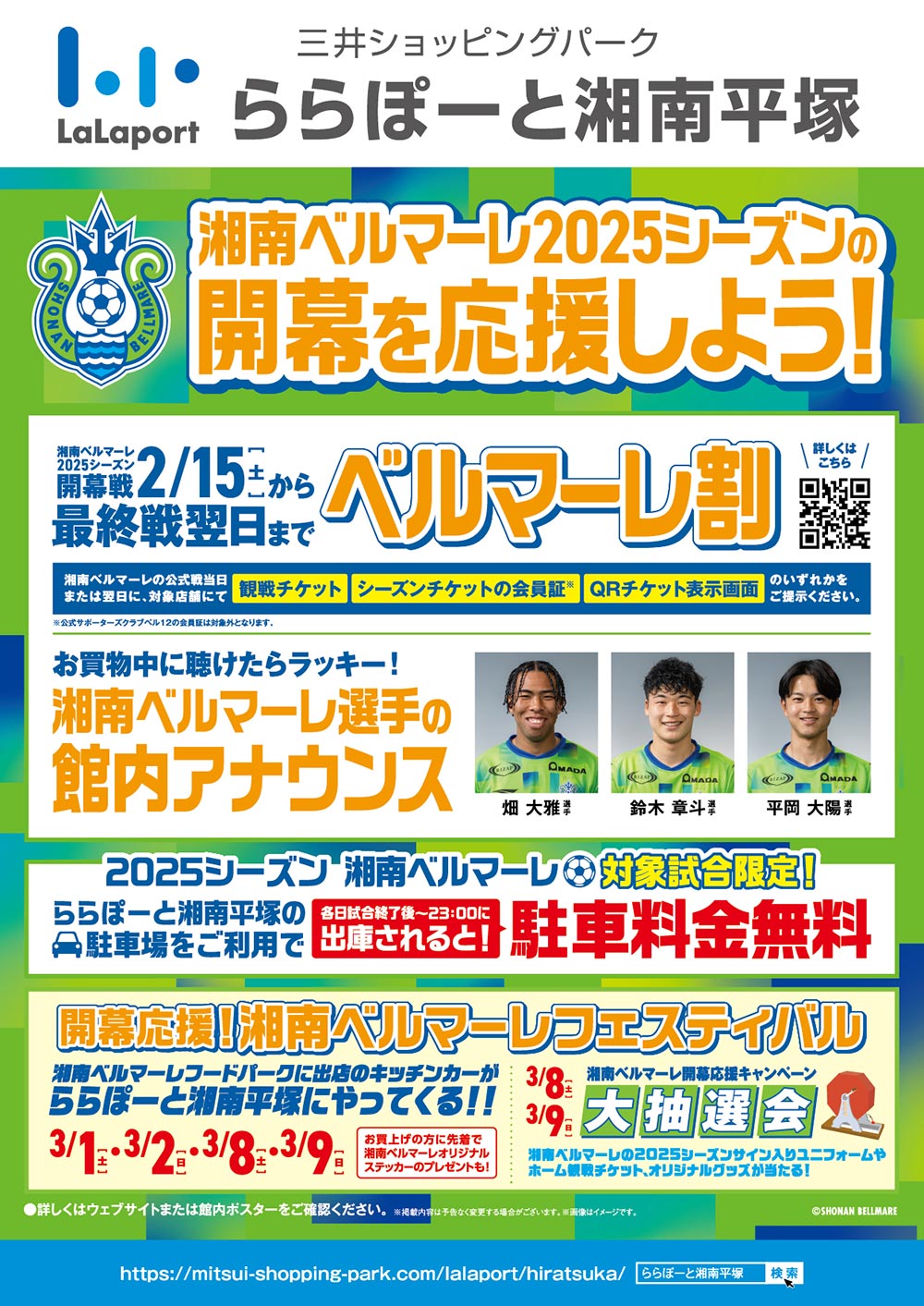 2月15日(土)ららぽーと湘南平塚で「選手館内アナウンス」放送開始!