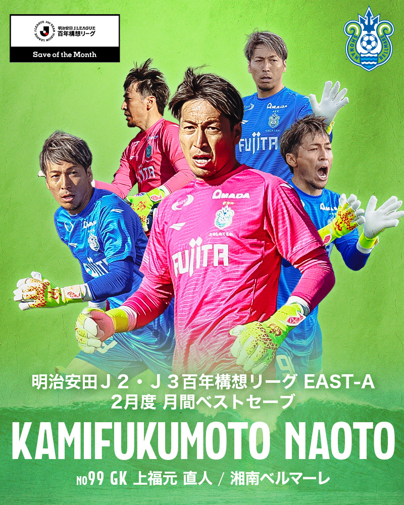 上福元 直人選手 明治安田J2・J3百年構想リーグ EAST-A 2月度「月間ベストセーブ」受賞のお知らせ