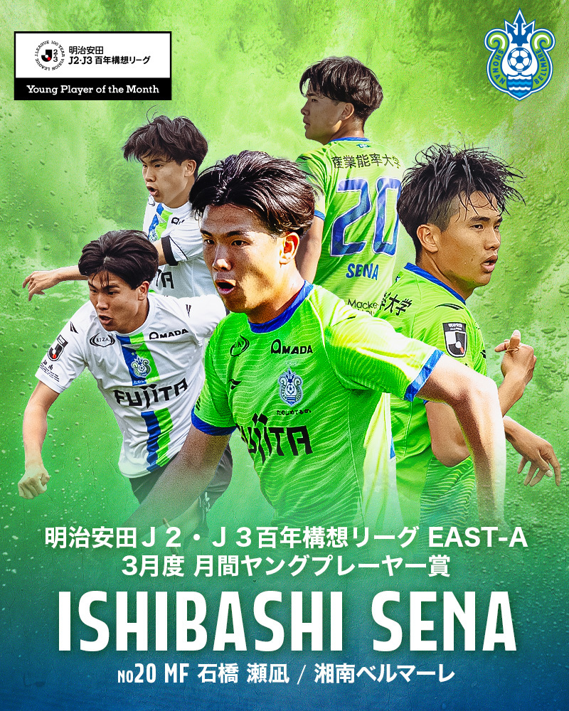 石橋 瀬凪選手 明治安田J2・J3百年構想リーグ EAST-A 3月度「月間ヤングプレーヤー賞」受賞のお知らせ