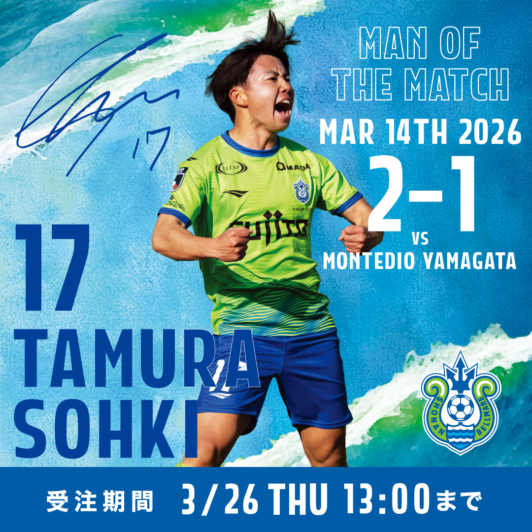 3月14日(土)モンテディオ山形戦「田村蒼生選手 マン・オブ・ザ・マッチグッズ」受注販売開始!