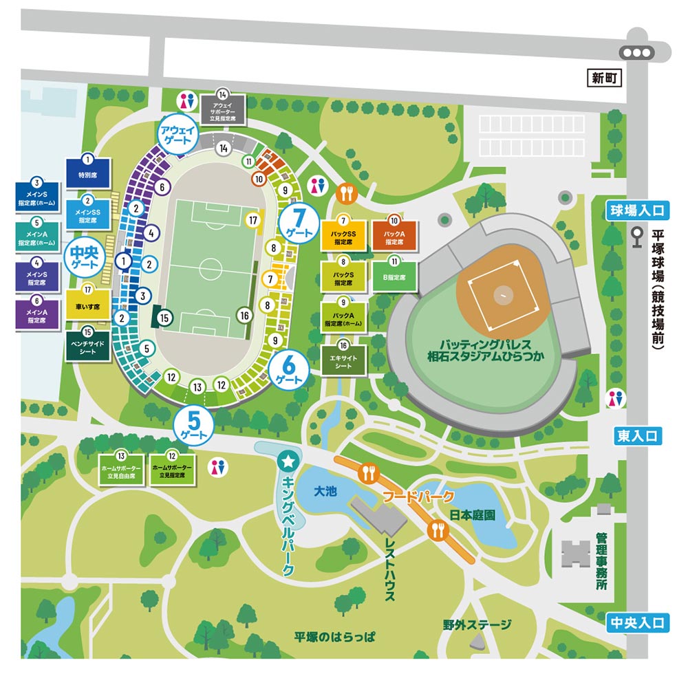 入場ゲートは、中央ゲート、8ゲート、7・HIDEゲート、6ゲート、アウェイゲートの5箇所となります。