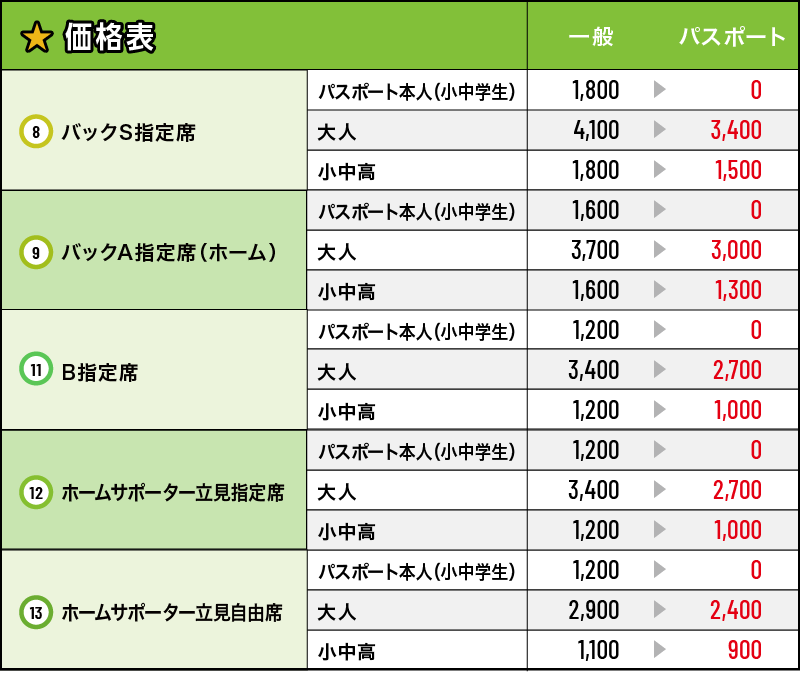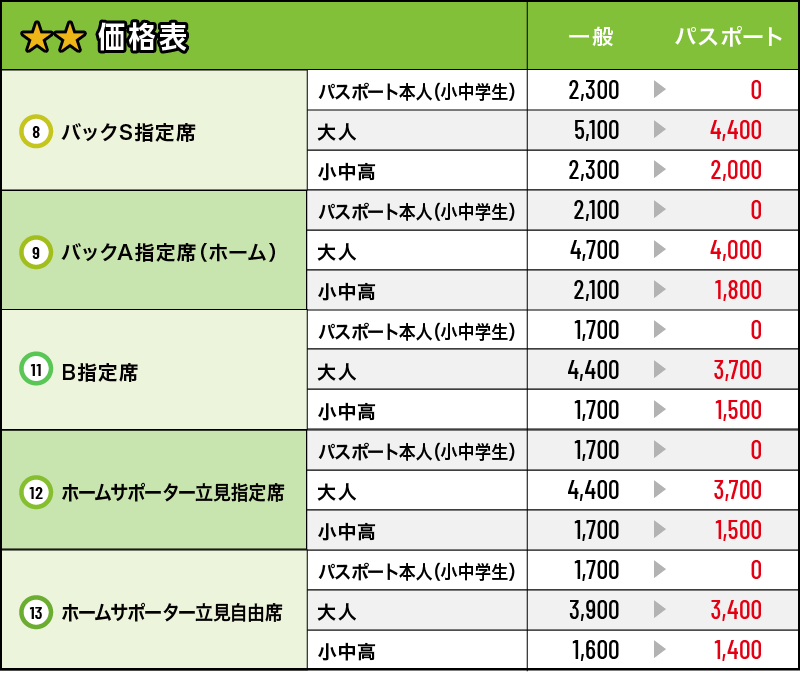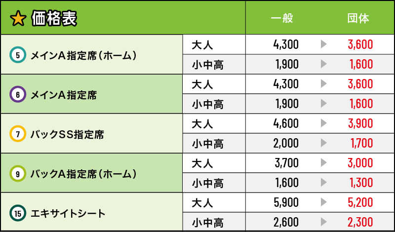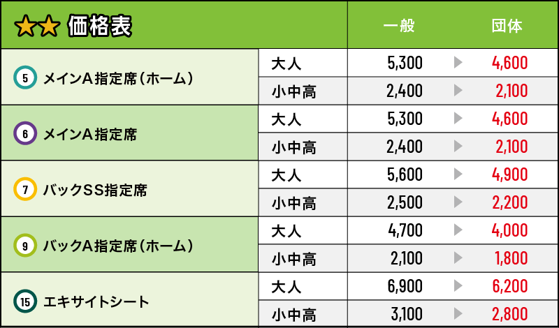 ※チケット価格(☆or☆☆)は試合ごとに異なります。