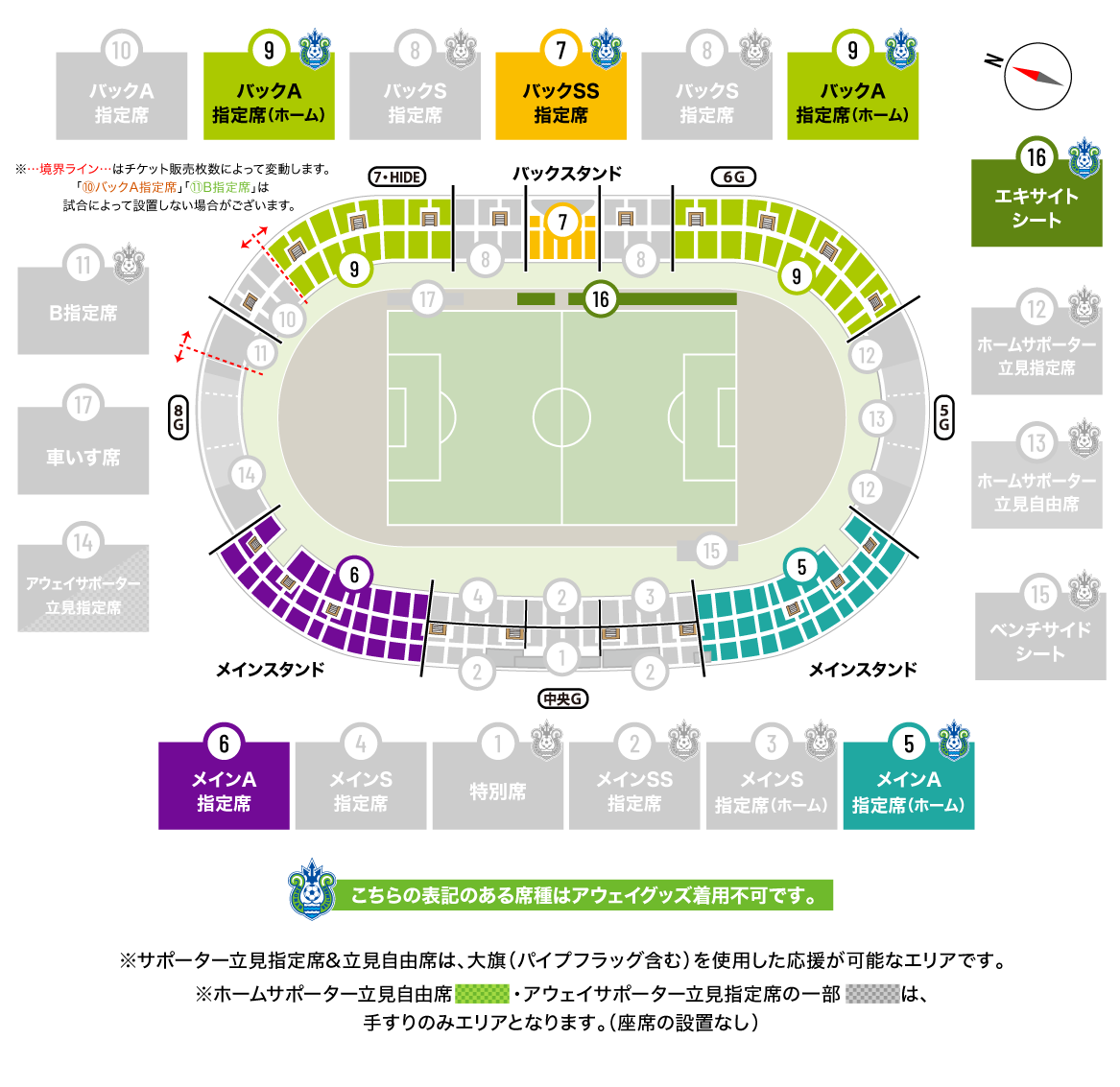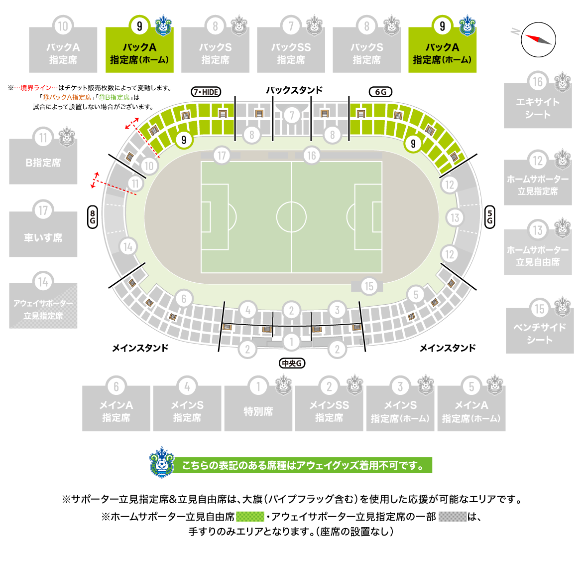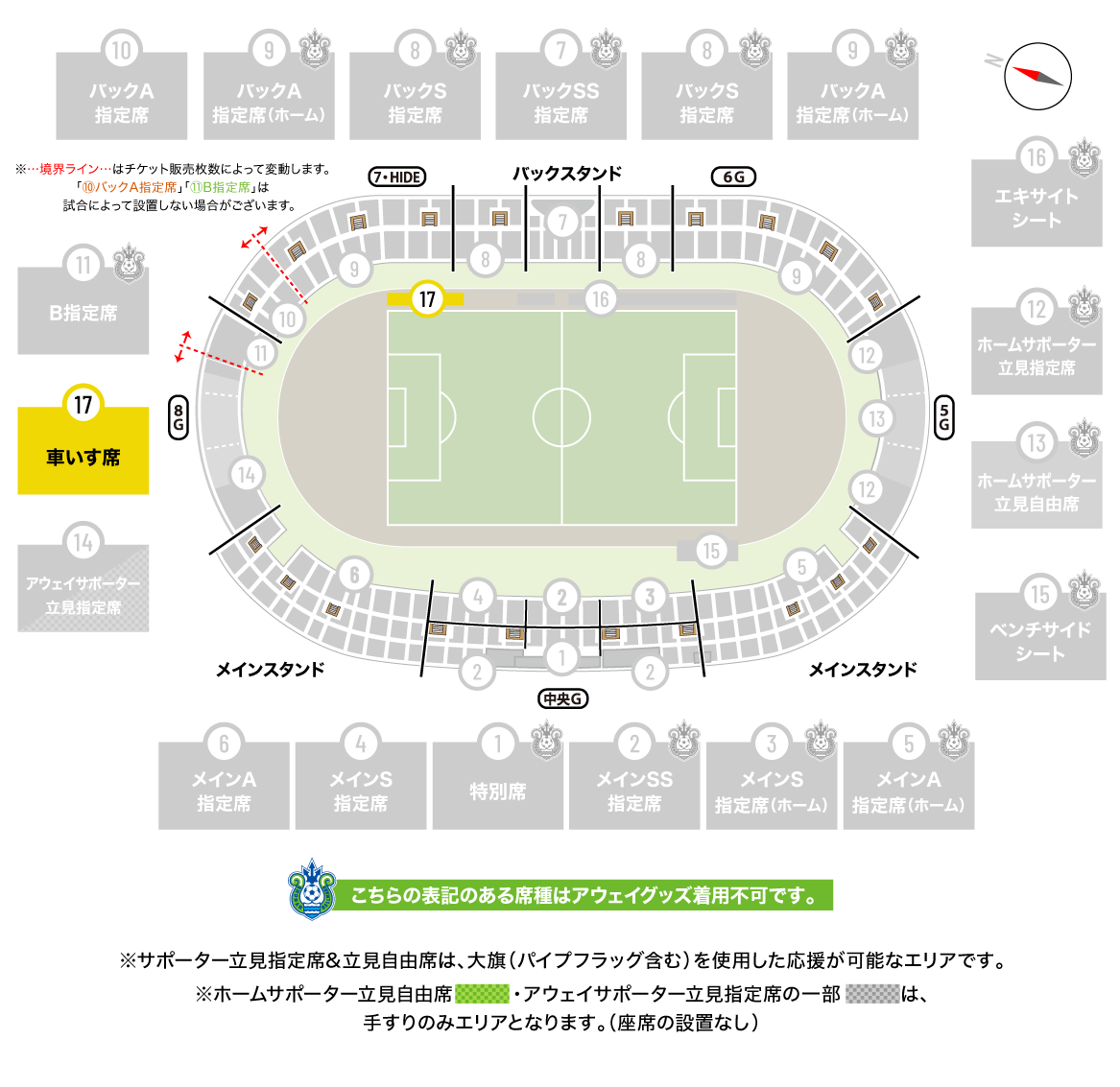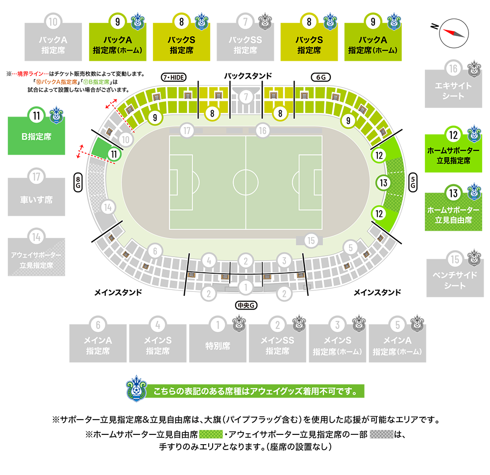 ※アウェイグッズを身につけてのご利用はできません。
