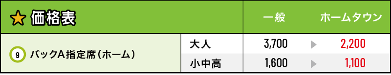 ※各試合の「対象ホームタウン」に該当の市・町に“在住”の方限定で特別価格のチケットをご購入いただけます。