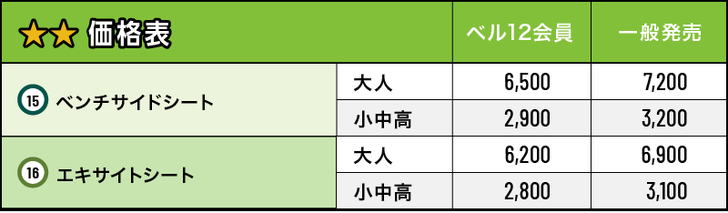 ※試合別に価格帯を2段階(★、★★)に分けたフレックスプライシング(試合単位での価格変動)で販売いたします。