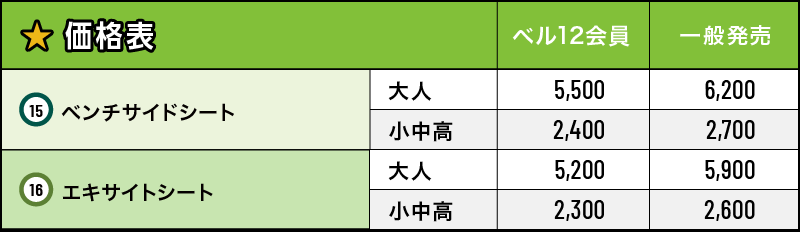※試合当日のチケット価格は表示価格から一律【+500円】となります。