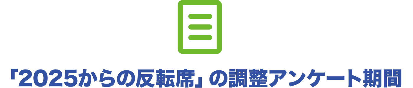 スタンドの形状の問題より、反転できない一部の方々、および新たに指定席となる「車いす席」の方々は、継続座席の調整アンケートを実施いたします。