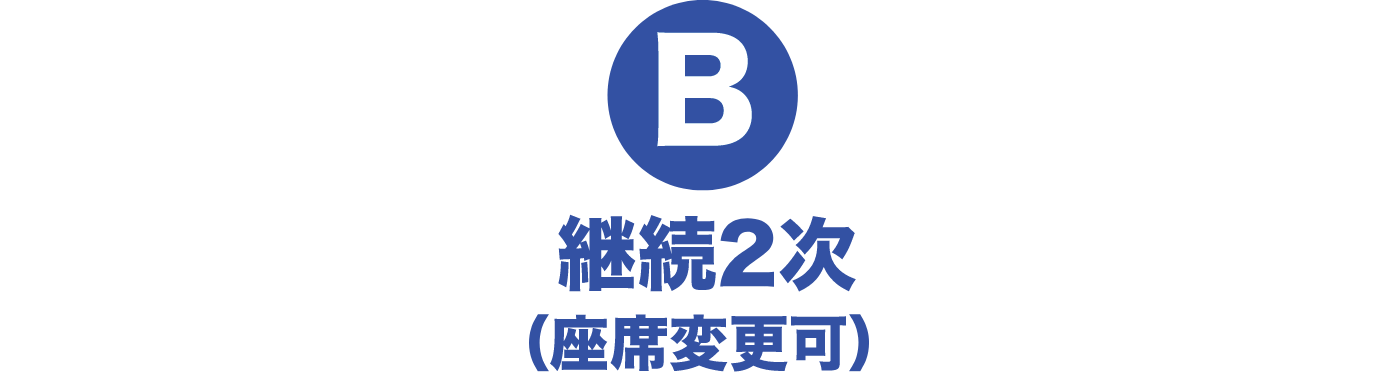 「A:継続1次」の期間内にお申込みがない「同席継続権利の座席」につきましては、「B:継続2次」以降の販売席として開放されます。いかなる場合においても、座席権利の復活などはいたしかねますので、予めご了承ください。