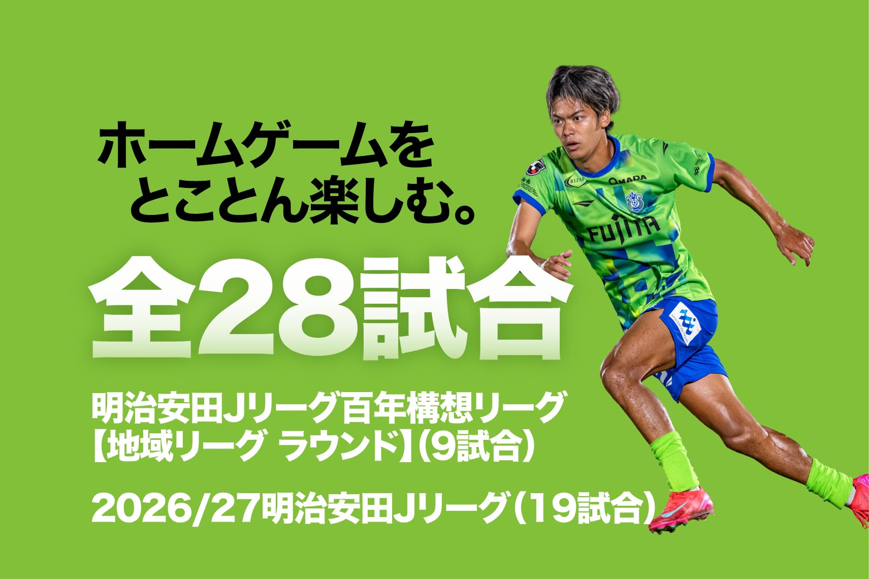 明治安田Jリーグ百年構想リーグ【地域リーグ ラウンド】の9試合と2026/27シーズン19試合の計28試合で利用できる特別なシーズンチケットです。