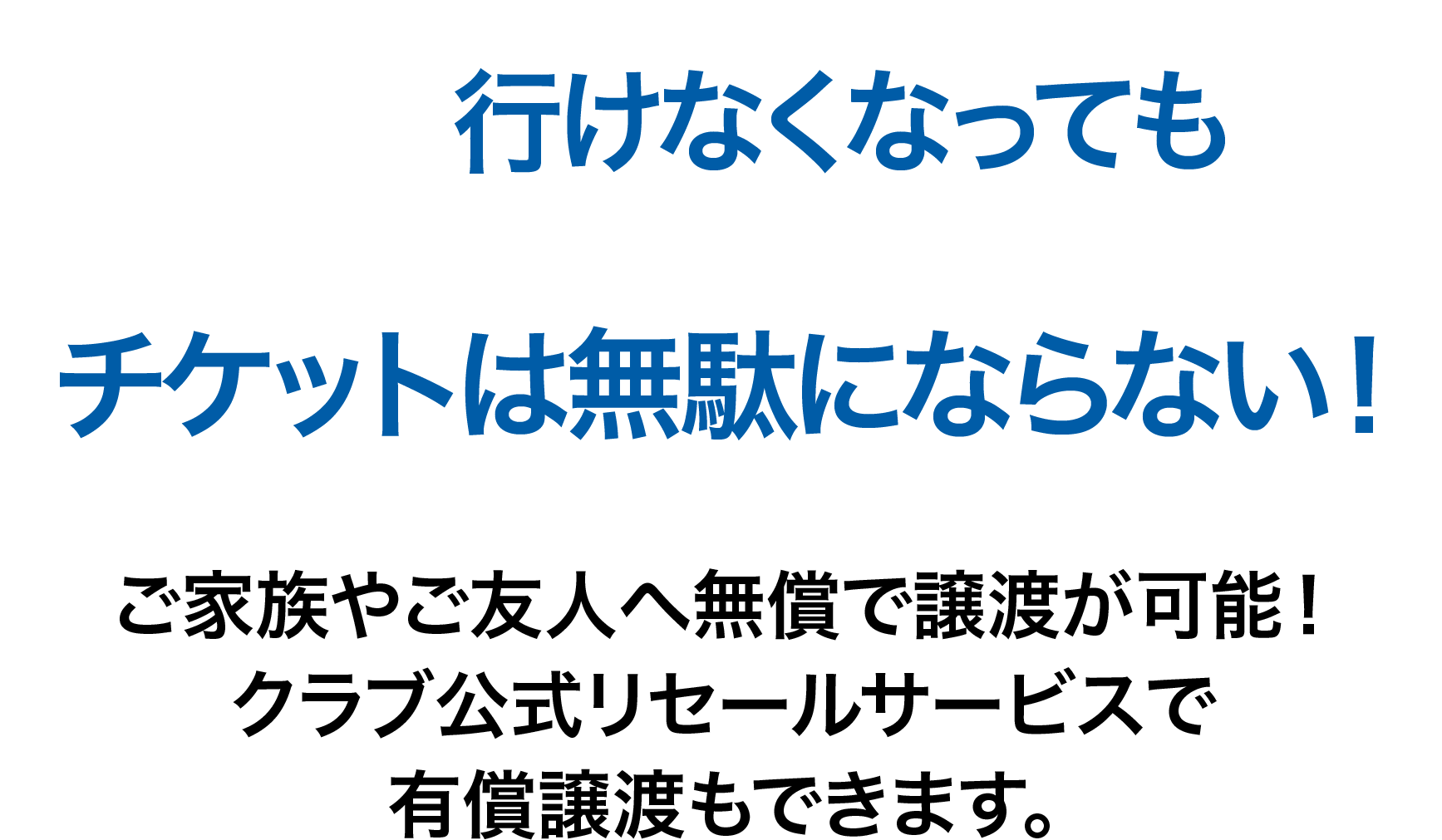 小中高のシーズンチケットをお持ちの方でお子様が行けない時は、試合当日「チケットブース」にて当日券価格の差額をお支払いいただくことで、大人の方がご入場いただけます。